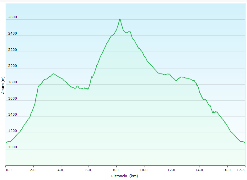 Desnivel positivo: 1.200 m aprox.